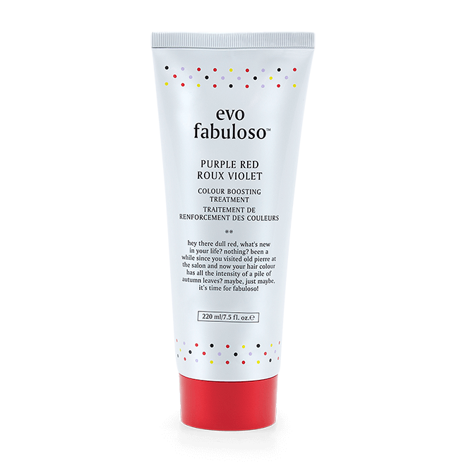 A purple red coloured hair treatment for blonde hair. Achieve a refreshed, revived and toned colour boost in just 3 minutes with Evo fabuloso Colour Boosting Treatments.