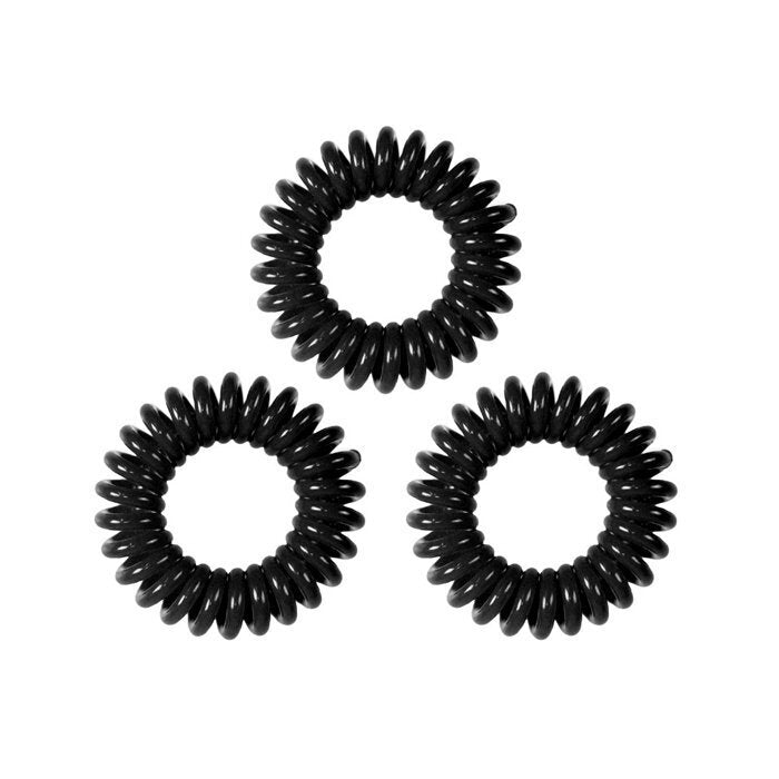 When this hair ring is wrapped around the hair, it places uneven pressure around the circumference of the ponytail or a bun. Standard hair rings put even pressure on the hair, leaving an obvious mark. The Tangle Tie’s peculiar telephone shape eliminates this.